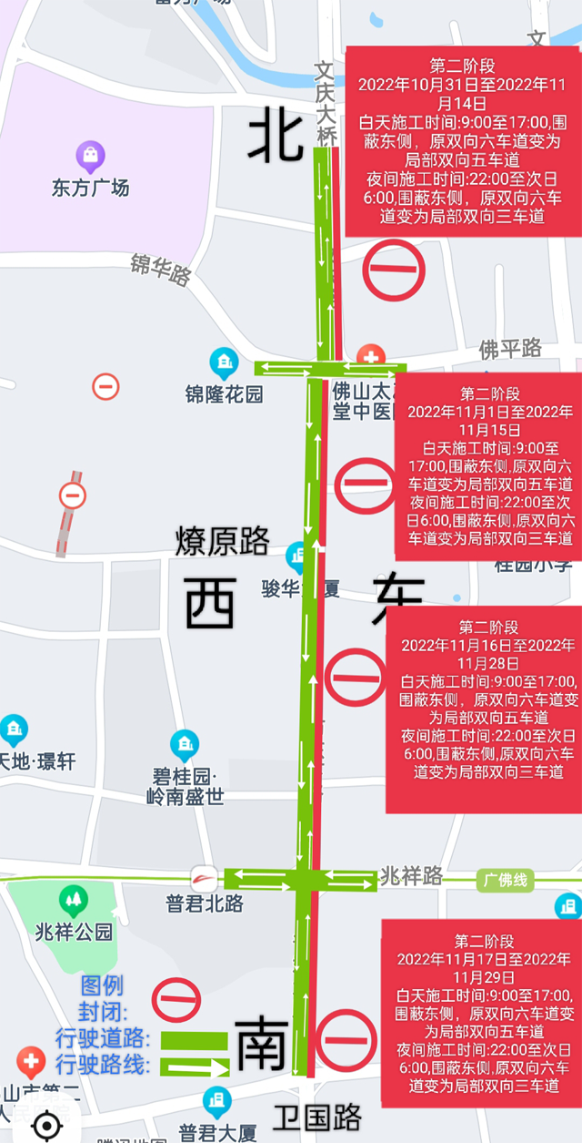 2、2022年11月1日至2022年11月15日,对佛平路-燎原路东侧进行临时围蔽。