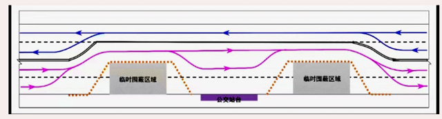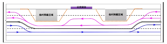 ▲第二阶段:市东路(东侧)围蔽公交站点(南往北)疏导图