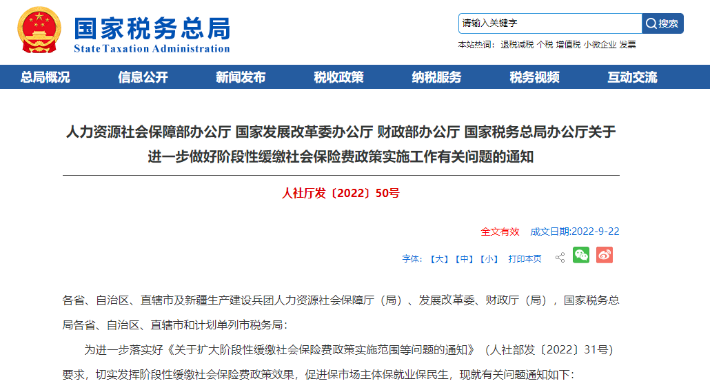 人力资源社会保障部、国家发展改革委、财政部、国家税务总局等四部门办公厅近日联合发布通知,明确自2022年9月起,各省、自治区、直辖市及新疆生产建设兵团可根据本地区受疫情影响情况和社会保险基金状况,进一步扩大缓缴政策实施范围,覆盖本地区所有受疫情影响较大、生产经营困难的中小微企业、以单位方式参保的个体工商户、参加企业职工基本养老保险的事业单位及各类社会组织,使阶段性缓缴社会保险费政策惠及更多市场主体。
