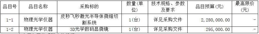 皮秒飞秒激光半导体微细切割系统、3D光学数码显微镜(三次)招标项目的潜在投标人应在广东省政府采购网https://gdgpo.czt.gd.gov.cn/获取招标文件,并于2022年10月18日09时30分(北京时间)前递交投标文件。
