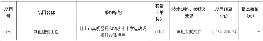 项目名称:佛山市高明区杨和镇沙水小学运动场提升改造项目