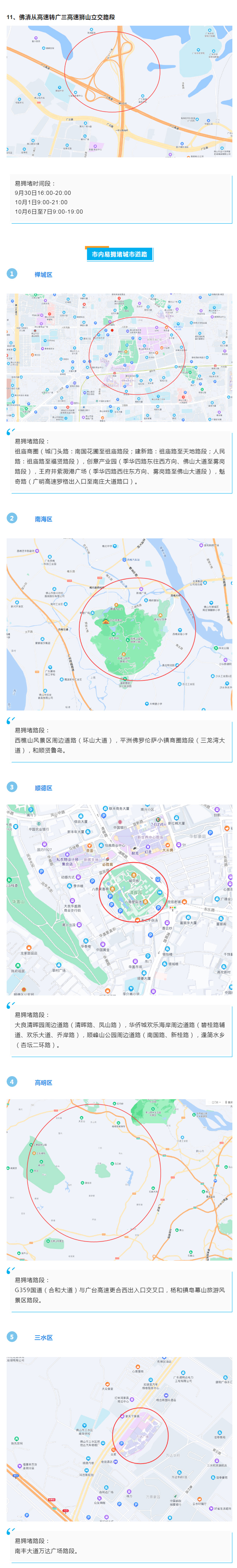 佛山公安交警提前制定“一堵点一预案”、“一景点一方案”,有针对地强化重要路段的疏堵保畅工作,尤其是在高速公路重点时段、易堵点、警情多发点及时疏堵保畅;联合文旅部门优化景区周边道路的交通组织,增设临时车位、指示标志,引导车辆有序停放;为群众的顺畅出行努力创造良好的交通环境。