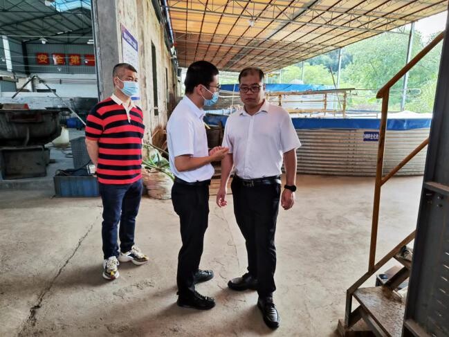 佛山市生态环境局三水分局局长陈新汧带领佛山市生态环境局三水分局、西南生态环境监管所组成的检查组对旧金本片区相关企业进行检视。佛山市生态环境局三水分局副局长潘永坤、西南街道办事处副主任田野陪同检查。