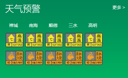目前,高明区森林火险橙色和高温黄色预警信号正在生效,请注意森林防火和家居用火安全,并注意防暑防晒。