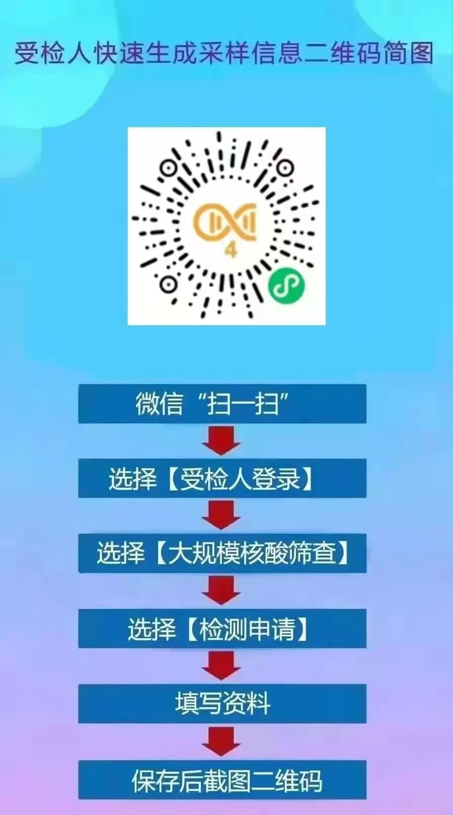 三、请提前通过广东省新冠病毒检测信息系统小程序(即“粤核酸4”)登记个人及家人信息(老人、小孩没有手机的,可在家人手机账号下添加生成其二维码),并截图保存“个人采样信息二维码”,以便提高信息采集效率。