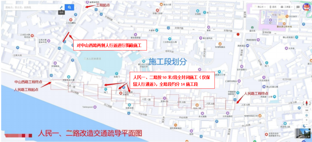 三水西南人民一路、人民二路、中山西路10月4日起围蔽施工