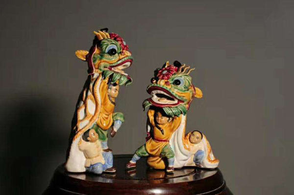 “石湾公仔”有三绝,一是瓦脊公仔,作为屋脊上面及其两头的装饰构件,现多演变为桌面人物公仔;二是动物碌胎毛技法,即用细小的钟表发条来在素胎,或施过釉的陶器表面上勾勒出动物细致的羽毛;三是微塑公仔,它是山公盆景的简称,也是石湾特有的一门艺术。