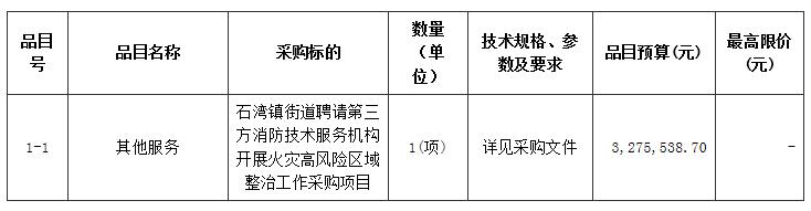 项目名称:石湾镇街道聘请第三方消防技术服务机构开展火灾高风险区域整治工作采购项目