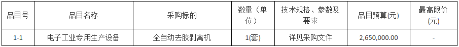 项目名称:广东中科半导体微纳制造技术研究院全自动去胶剥离机采购项目