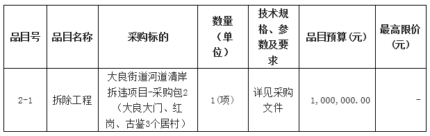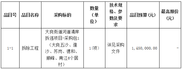 大良街道河道清岸拆违项目采购项目的潜在供应商应在广东省政府采购网https://gdgpo.czt.gd.gov.cn/获取采购文件,并于 2022年10月14日 09时30分 (北京时间)前提交响应文件。