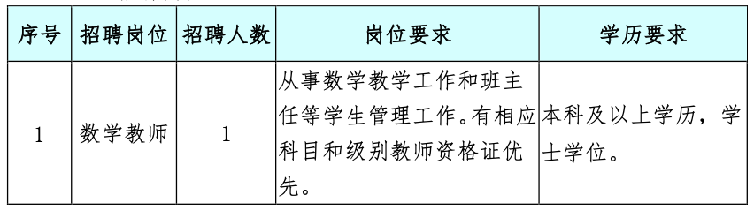 初中英语临聘教师1人。