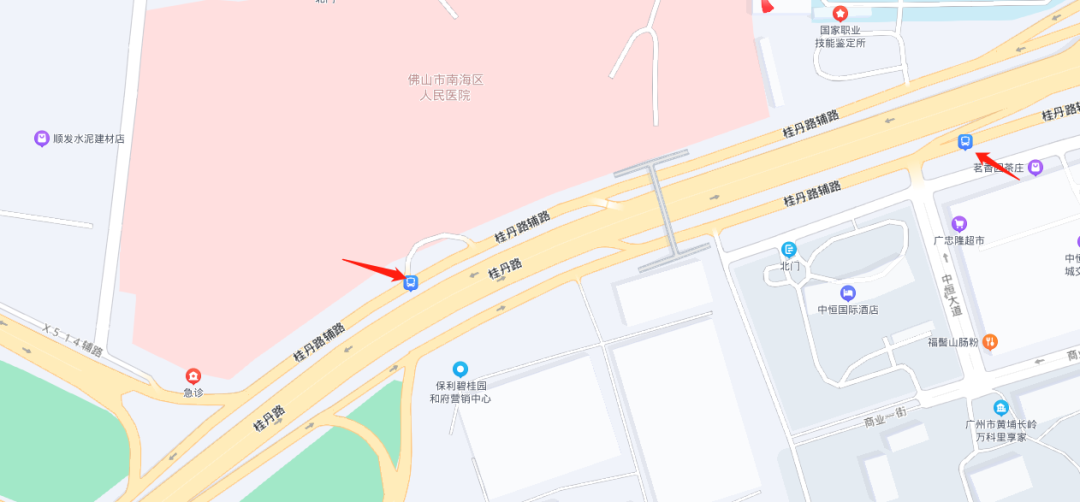 新南海医院站、新南海医院(南海信息技术学院)站(中恒海晖城门口)。