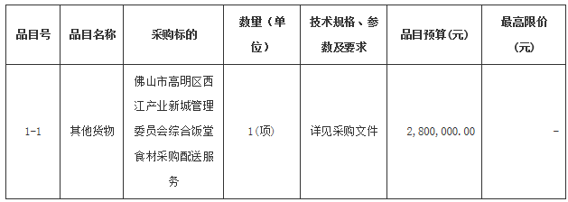 项目名称:佛山市高明区西江产业新城管理委员会综合饭堂食材配送服务