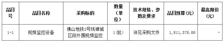 佛山地铁2号线禅城区段外围视频监控建设项目采购项目的潜在供应商应在广东省政府采购网https://gdgpo.czt.gd.gov.cn/获取采购文件,并于 2022年10月20日 09时00分 (北京时间)前提交响应文件。