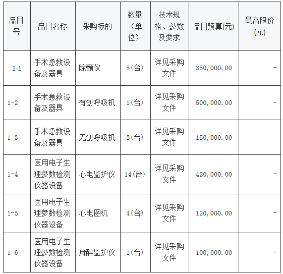 项目名称:桂城医院采购医疗设备一批(生命支持类设备)