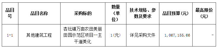 合同包1(杏坛镇万亩农田美丽田园示范区项目--主干道美化工程):