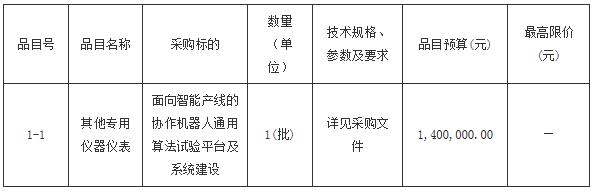 合同包1(面向智能产线的协作机器人通用算法试验平台及系统建设):
