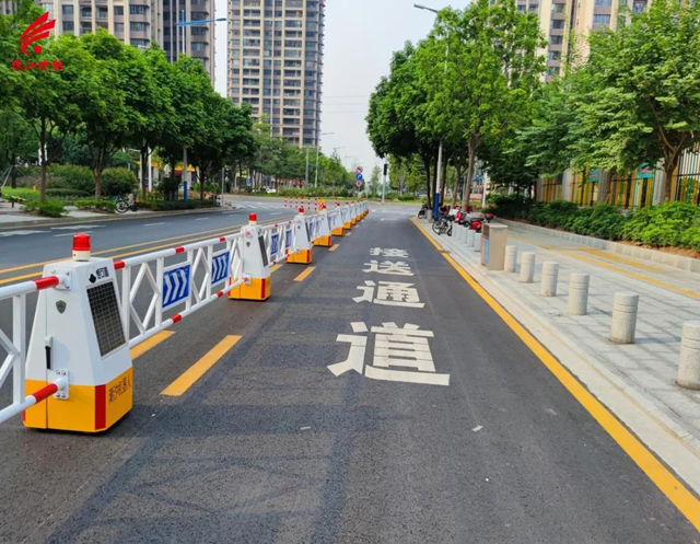 首先,相关部门在学校西门启用南海首条“错峰共享车道”,利用可移动遥控护栏实现车道智能化错峰共享,非上下学接送时段,遥控护栏置于道路中线,靠近学校车道供机动车正常通行使用;上下学接送时段,遥控护栏往学校方向移动一条车道,靠近学校车道仅用于慢行接送。其次,灯湖三小新开北门和东门,划设各班家长接学等候区域,多点接送分散交通压力,避免家长扎堆,接送学生更高效。