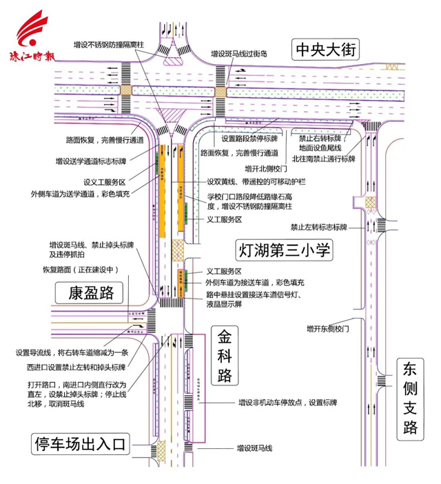 灯湖三小交通改善方案示意图。