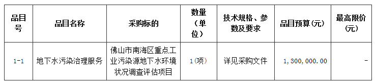 佛山市南海区重点工业污染源地下水环境状况调查评估项目招标公告