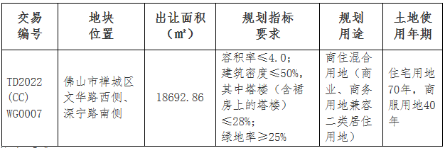 五、有意参与竞买者可于10月14日后登录网上交易系统下载TD2022(CC)WG0007地块的《佛山市禅城区国有建设用地使用权网上挂牌出让文件》。