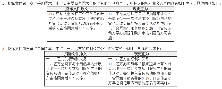 14、乙方必须每年(按顺延年计算)开展不少于一次涉及本项目服务内容的宣传活动,每年投入宣传活动的费用不低于合同当年服务费的0.2%,且宣传活动方案必须经甲方审核同意后方可实施。