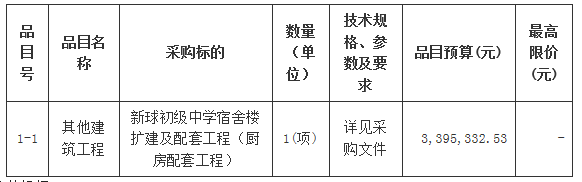 项目名称:新球初级中学宿舍楼扩建及配套工程(厨房配套工程)