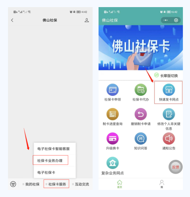 通过“佛山社保”微信公众号,点击菜单栏“社保卡服务”—“社保卡业务办理”—“快速发卡网点”。