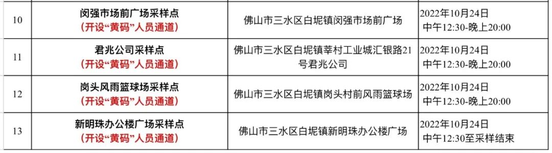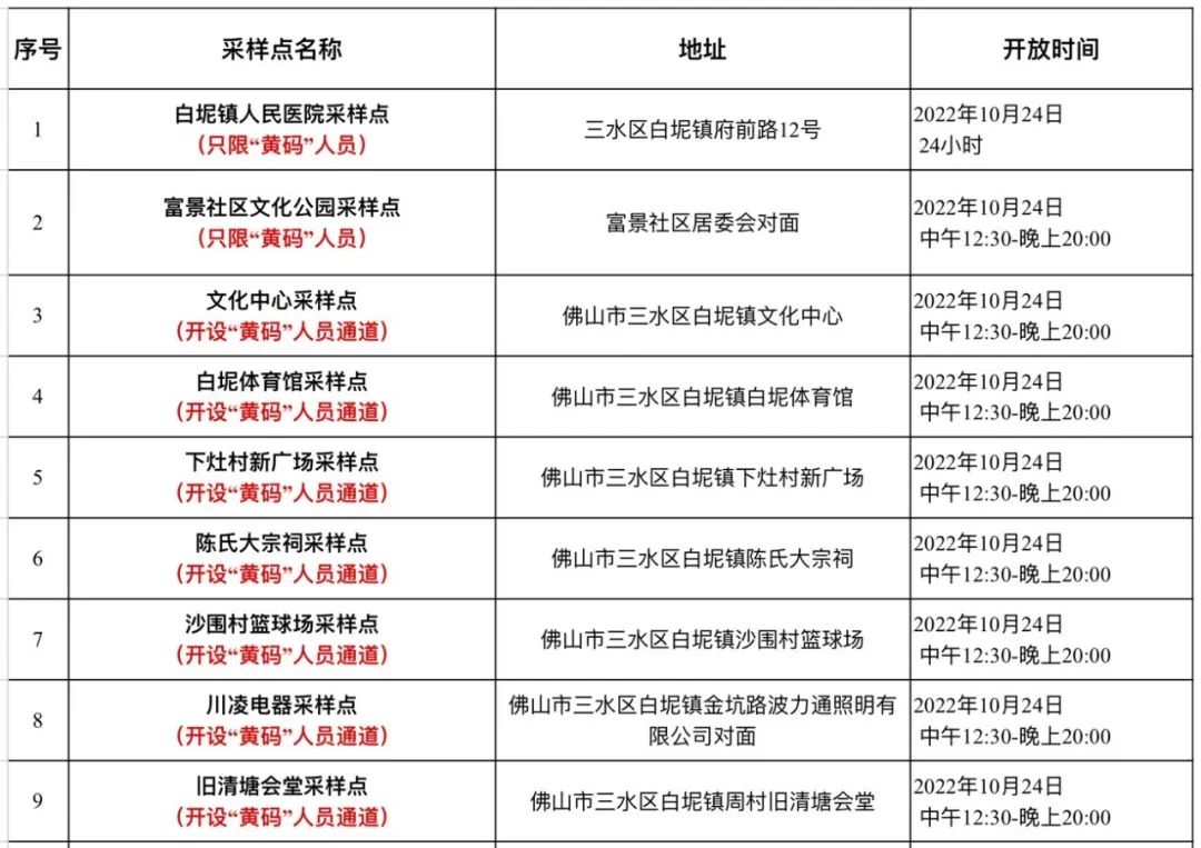 (白坭镇人民医院、富景社区文化公园设黄码专区)
