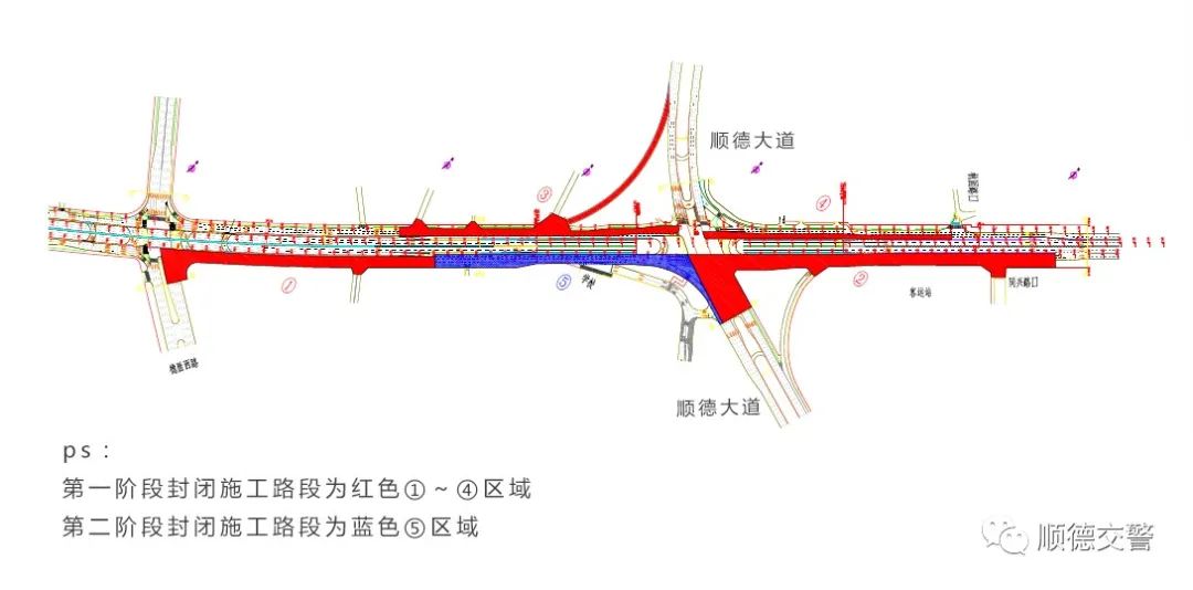 德胜西路至杏坛路口下穿隧道西入口路段(杏坛往大良方向)辅道及顺德大道至延年路跨线桥入口路段(杏坛往大良方向)辅道进行全封闭施工;杏坛路口下穿隧道北侧辅道(大良往杏坛方向)分幅进行封闭施工,并至少保留一条车道通行。