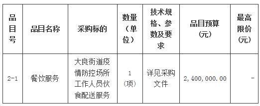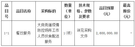 项目名称:大良街道疫情防控场所工作人员伙食配送服务项目