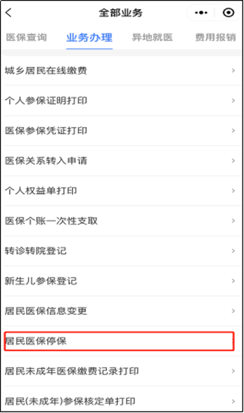 03、“业务办理”中点击“查看更多”,后点击“居民医保停保”进入操作页面。