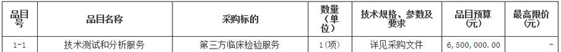 第三方临床检验服务招标项目的潜在投标人应在广东省政府采购网https://gdgpo.czt.gd.gov.cn/获取招标文件,并于2022年11月15日09时00分(北京时间)前递交投标文件。
