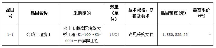 合同包1(佛山市顺德区海华大桥工程(K1+100~K3+000)—声屏障工程(二次)):
