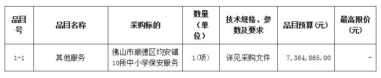 佛山市顺德区均安镇10所中小学保安服务项目(二次)招标公告
