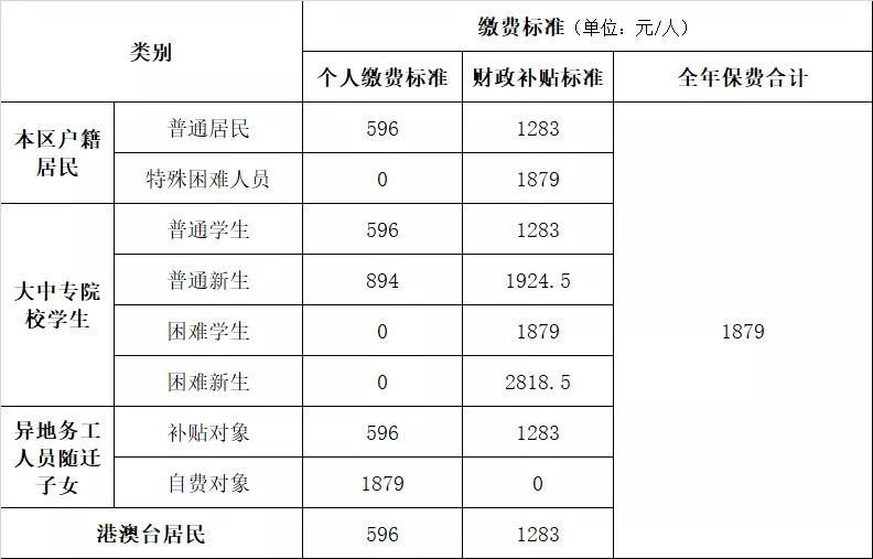 2.未在我区就读的异地务工人员随迁子女,按全额1879元收取。