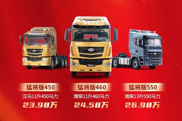 首先回顾下我们的主角,猛将版450直降6.79万,抢购价23.98万;猛将版460直降6.92万,抢购价24.58万。这两款重卡主打中短途运输,安全可靠、经济耐用,是性价比超高的赚钱利器。猛将版550直降7.75万,抢购价26.98万,这款车定位长途干线运输,驾乘舒适、智能节油,同样是卡友工作上最得力的帮手。