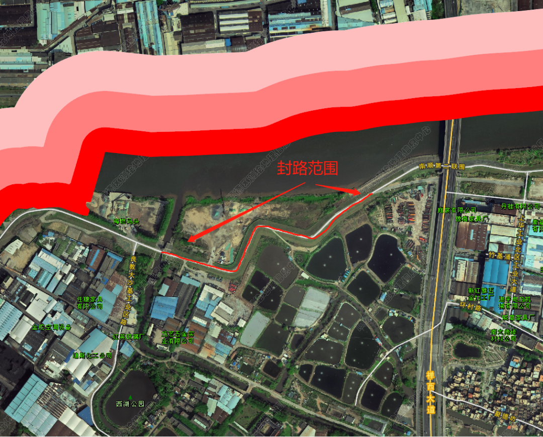 因吉利涌碧道禅城交界至禅西大道段建设工程需要,为确保施工安全及工程质量和进度,南顺第二联围乐从沙寮口水闸至禅西大道段实施全封闭施工,封闭时间2022年10月29日8时到2023年1月15日,请过往车辆提前绕行。不便之处,敬请谅解。