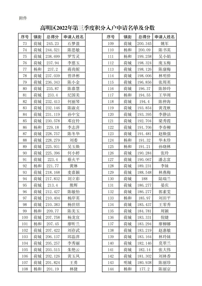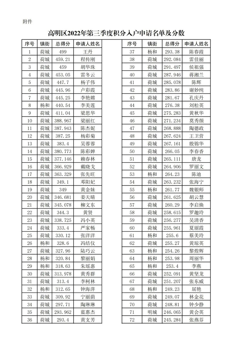 附件:1.三水区2022年第三季度新市民积分入户分数排名