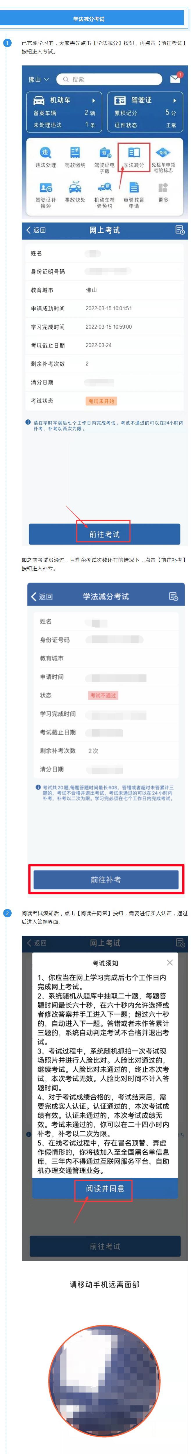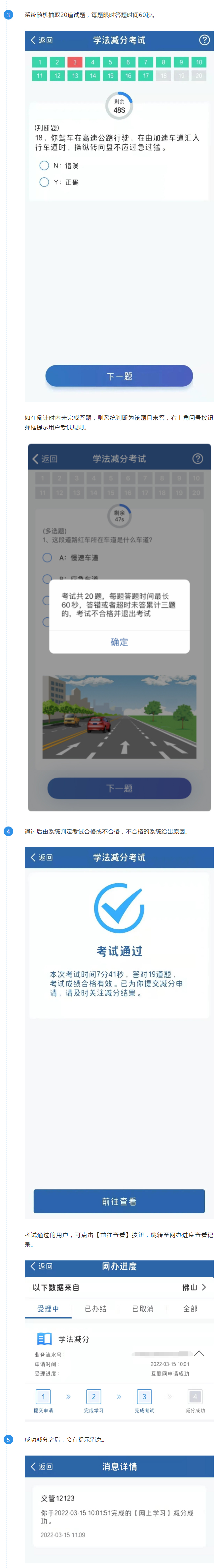 2、考试未通过的可以在24小时内补考,补考以两次为限。逾期或者补考不合格的,只能重新申请学法减分。