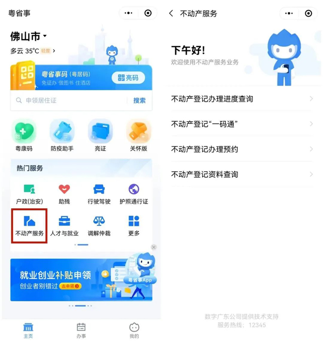 进入“粤省事”小程序首页→点击“不动产服务”→根据指示操作。