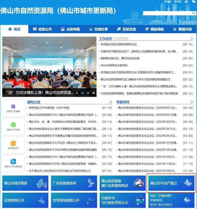 佛山市“互联网+不动产登记”网上申请平台于2021年6月25日正式更新启用,通过开展掌上预约、网上预审、网上审批以及在保障信息安全前提下的登记结果网上公开等服务,实现“自助查”“自助办”。
