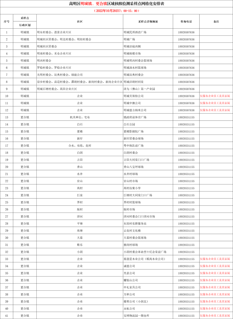 10月28日:白坭镇、乐平镇、芦苞镇、大塘镇、南山镇。