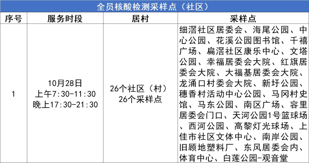(四)学校采样点:10月28日白天分批次采样,时间另行通知。