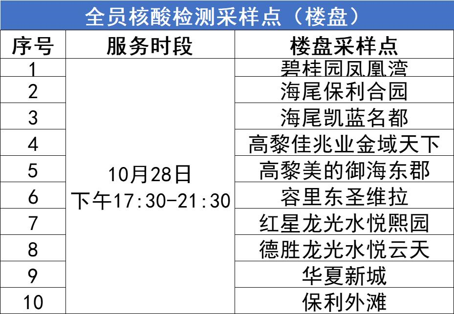 (三)采样点安排详见附件,其中楼盘采样点只向本楼盘居住人员提供采样服务。