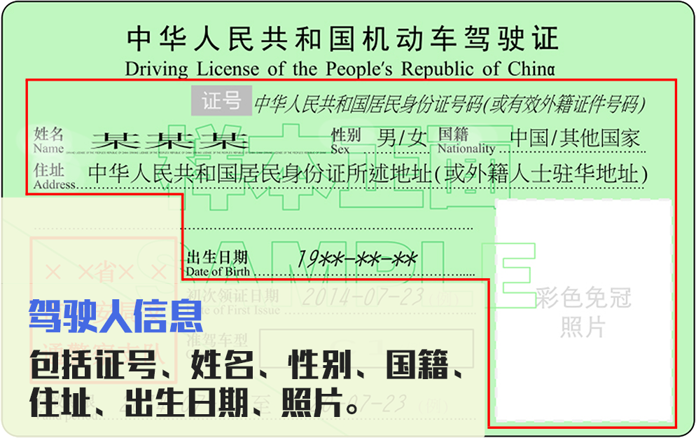 (一)机动车驾驶人信息:姓名、性别、出生日期、国籍、住址、身份证明号码(机动车驾驶证号码)、照片;