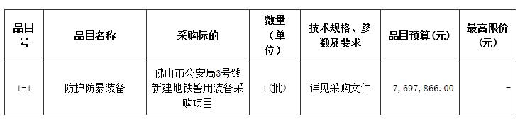 佛山市公安局3号线新建地铁警用装备采购项目公开招标公告