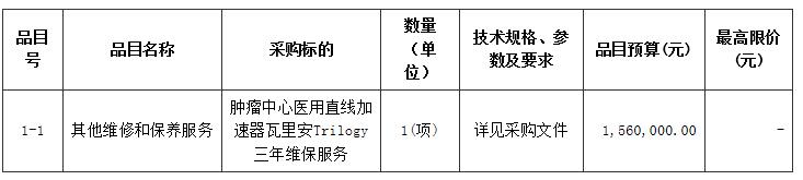 项目名称:肿瘤中心医用直线加速器瓦里安Trilogy三年维保服务