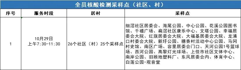 根据市区疫情防控工作统一安排,结合我街道实际,决定于10月29日上午继续提供免费核酸检测服务。请10月28日未完成核酸检测或有需要检测核酸的群众前往各采样点进行免费核酸检测。