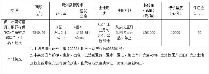 七、自本次公告起至网上挂牌截止期间,如有关于本地块网上挂牌出租文件的修改、澄清、说明等将通过上述网上交易系统、佛山市南海区人民政府网发布,不再另行通知,请有意参与竞租者密切留意。其它未尽事宜,详见本地块的网上挂牌出租文件。